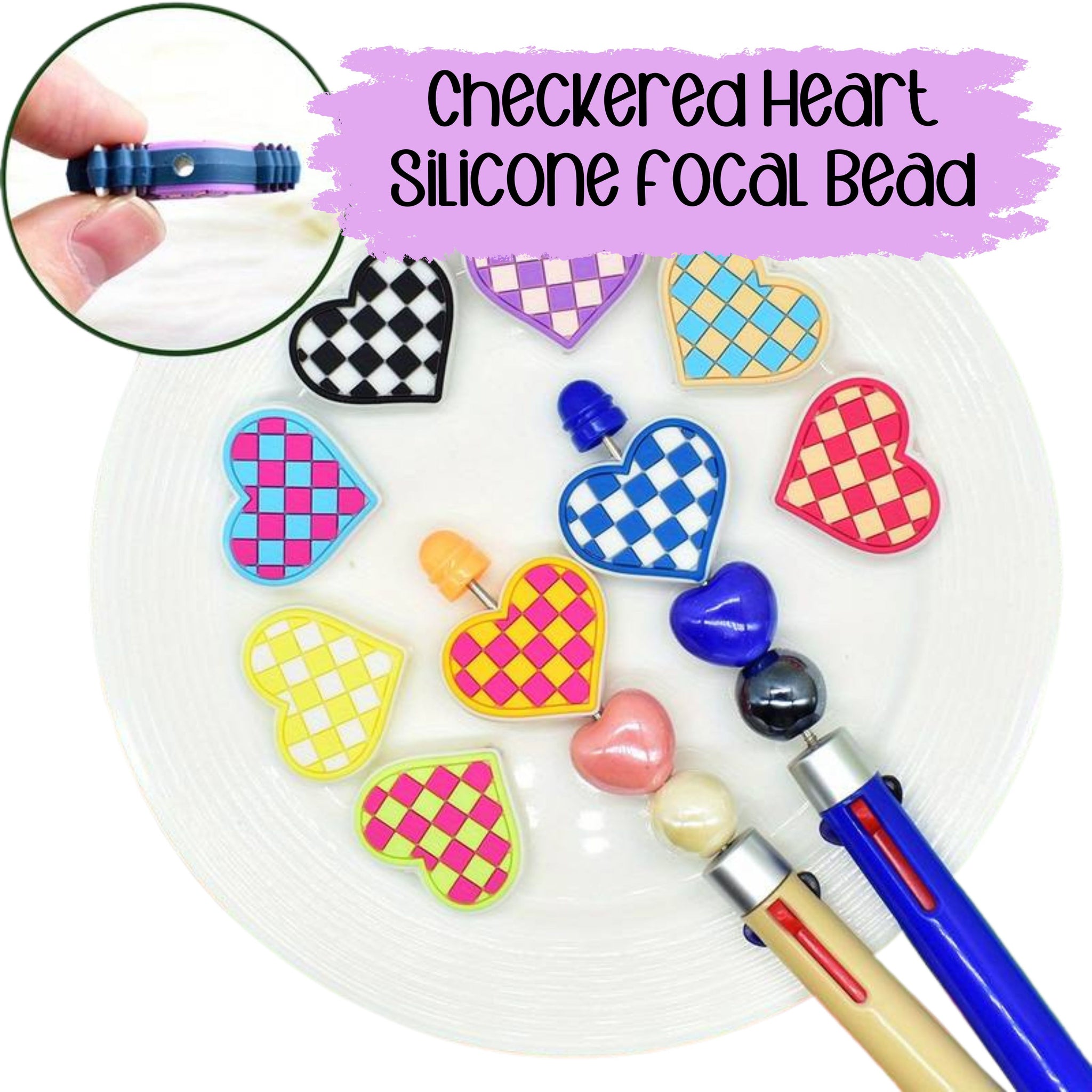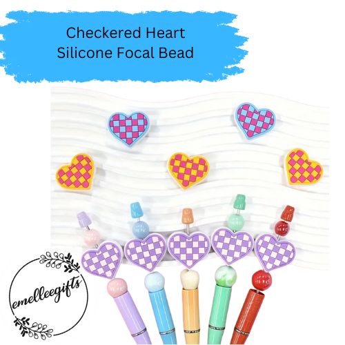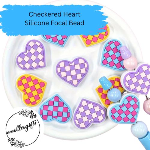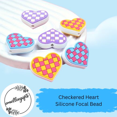 Silicone Checkered Flag Heart Bead